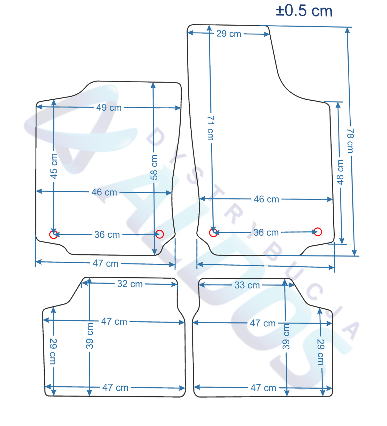 Dywaniki nie są oryginalnymi produktami OEM marki samochodu, a jedynie zamiennikami, które produkowane są przez Niemiecką Firmę PETEX.