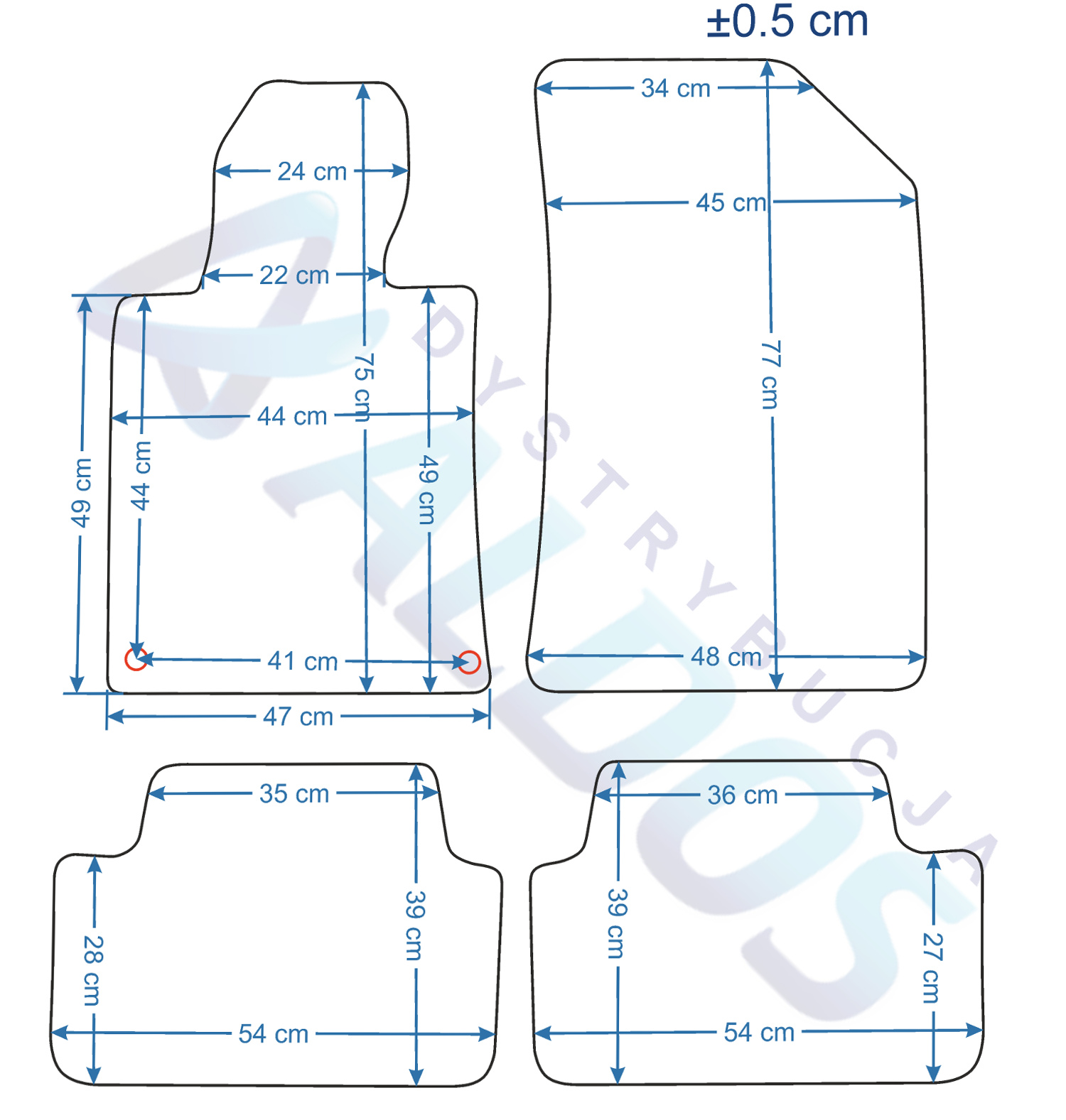 Dywaniki nie są oryginalnymi produktami OEM marki samochodu, a jedynie zamiennikami, które produkowane są przez Niemiecką Firmę PETEX.