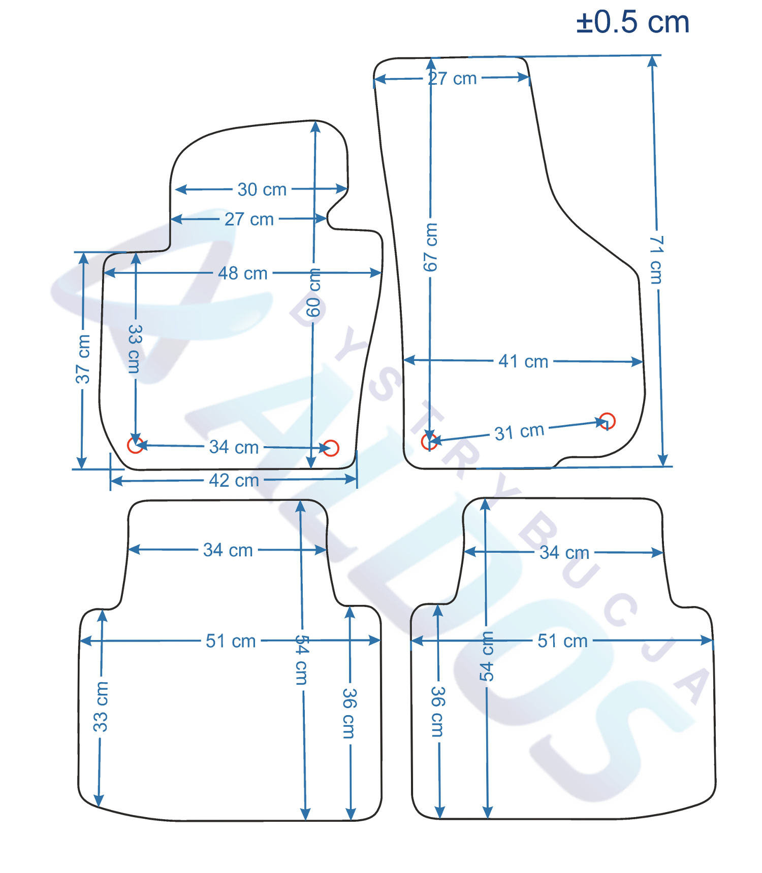 Dywaniki nie są oryginalnymi produktami OEM marki samochodu, a jedynie zamiennikami, które produkowane są przez Niemiecką Firmę PETEX.