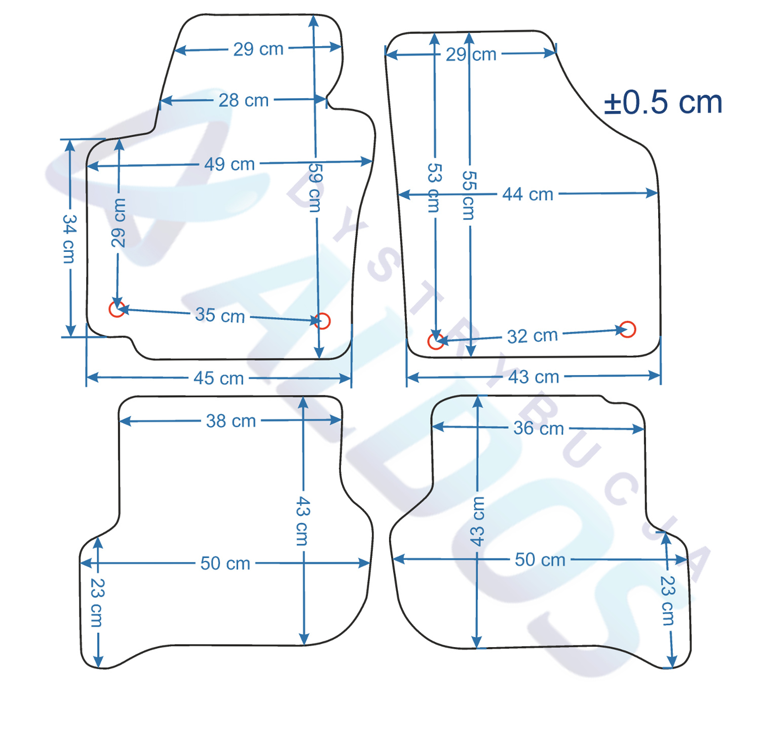 Dywaniki nie są oryginalnymi produktami OEM marki samochodu, a jedynie zamiennikami, które produkowane są przez Niemiecką Firmę PETEX.