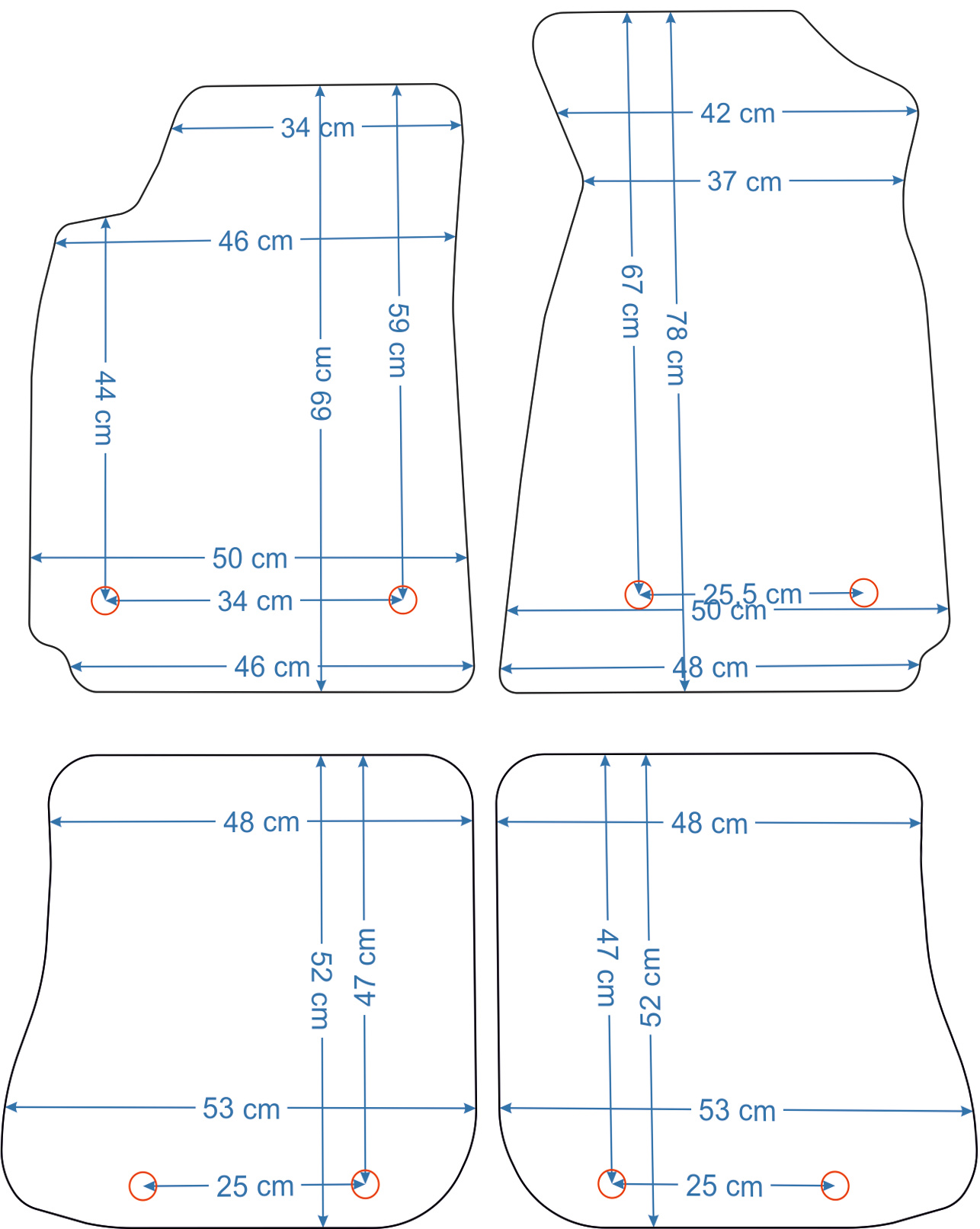 Dedykowane dla Audi A4 B5 (1994–2001), w wersjach Sedan i Kombi (Avant). Wykonane z weluru o gramaturze całkowitej ok. 2350 g/m² (runo ok. 650 g/m²), łączą komfort z estetyką wnętrza.